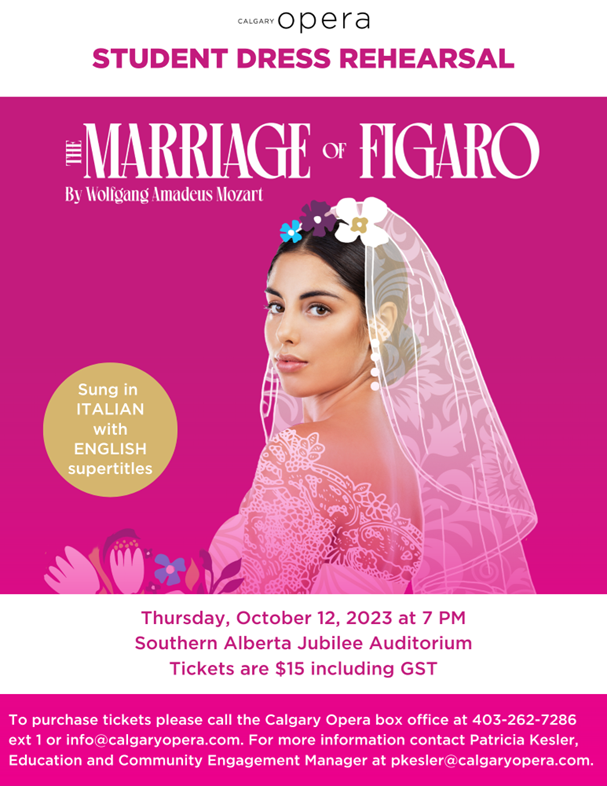 Because of our Partnership with Calgary Opera we enjoy reduced rates this year: